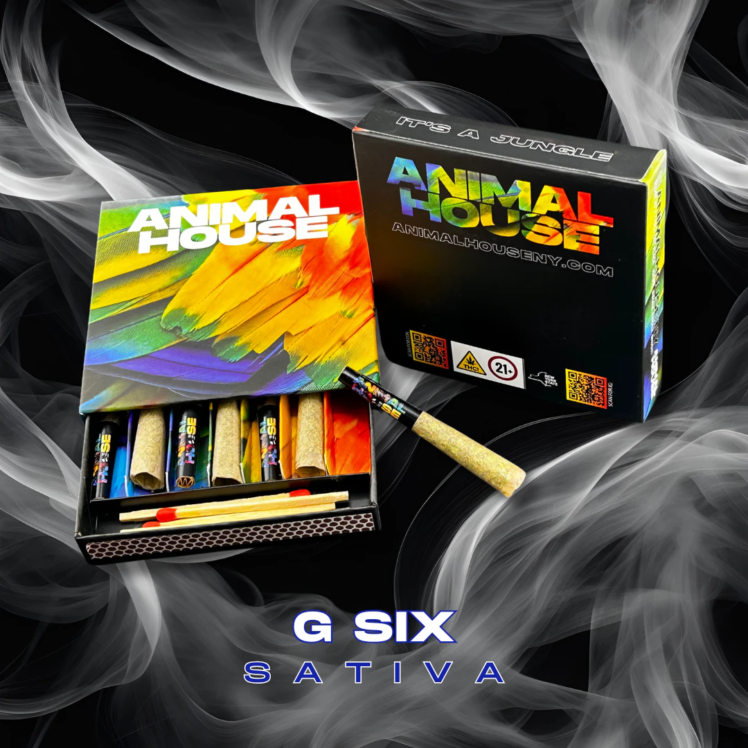 G6 is a sativa dominant hybrid (70% sativa/30% indica) strain created through a cross of the potent Aspen OG X High Country Diesel strains. The G6 high is incredibly energetic and uplifting, giving one a boosted mood that makes you feel almost like you're flying. The high begins with a rushing euphoria that hits hard and pulls your perspective and mood straight into the clouds. Animal House kief infused prerolls are are meticulously crafted with the perfect blend of pure ground flower and resinous, terpene rich kief to deliver strong effects and a flavor profile that tantalizes the senses.