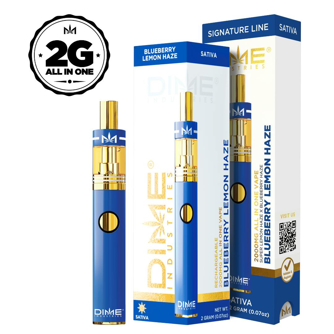 This flavor profile is a cross between Super Lemon Haze and Blueberry Haze. The sweet and sour strain provides an uplifting energetic buzz, becoming more euphoric as you smoke it. This flavor profile is reminiscent of sipping a fruity lemonade while smoking a joint on the patio during sunset. An instant classic, this flavor profile will keep you wanting more. Powered by Dime Industries hardware, this device offers 3 heat custom settings (4.2v to 3.2v), pre-heat function, easy air flow, and is USB-C rechargeable. Give your buds a delicious treat backed by the industry's most powerful battery!