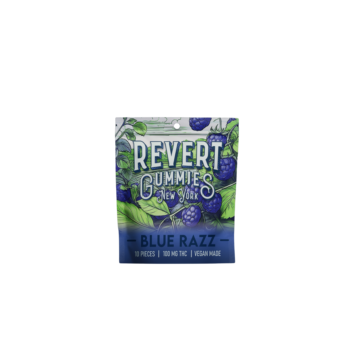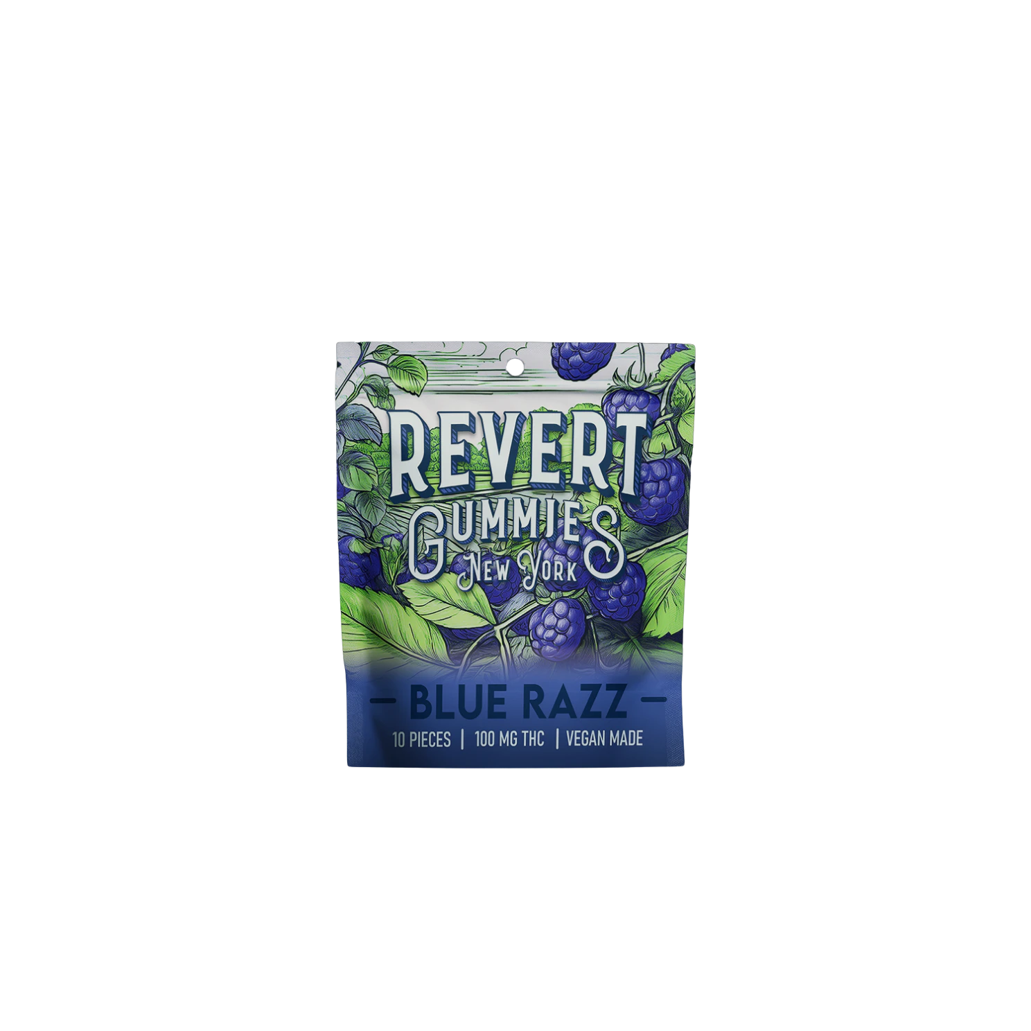 Revert Blue Razz 100mg Gummy Pack Revert THC Gummies are crafted for consistency, convenience, and a clean edible experience. Each package contains 10 easily separable 10mg portions (100mg total) for simple, precise dosing. Made with cannabis distillate and a pectin-based (gelatin-free) formula, these gummies offer a smooth, reliable effect and a soft, chewy texture, and are vegan-made. Blue Razz delivers a bold, tangy-sweet flavor with a bright, candy-like finish.
