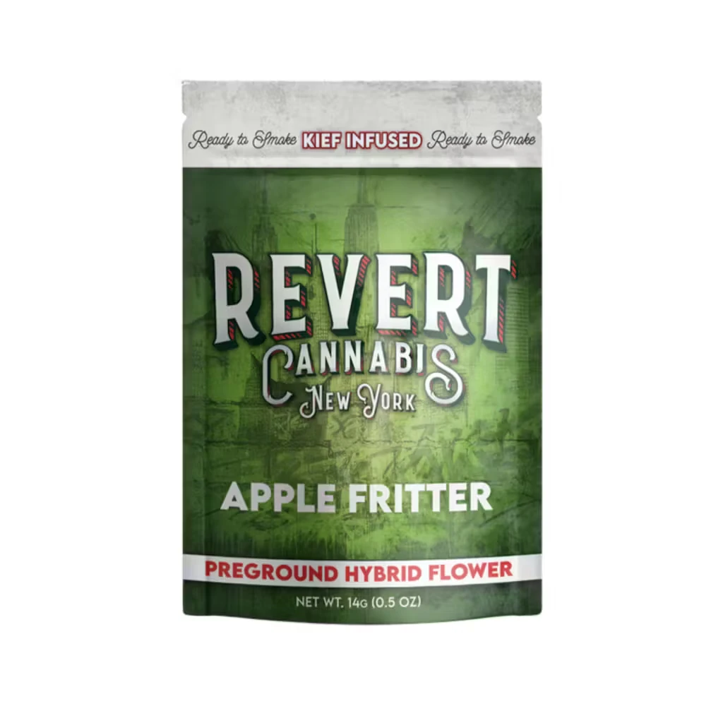 Apple Fritter – 14g kief infused ground flower crafted from sungrown hybrid flower, bred from Sour Apple × Animal Cookies, presenting notes of baked apple and subtle cream with a terpene-rich aroma of light pastry and gentle earth. The expression is layered without feeling heavy. The effects begin with a clear, upbeat headspace that gradually eases into relaxed comfort, making it a versatile choice for afternoon or early evening use. Apple Fritter maintains a balanced feel grounded in consistent sungrown quality.