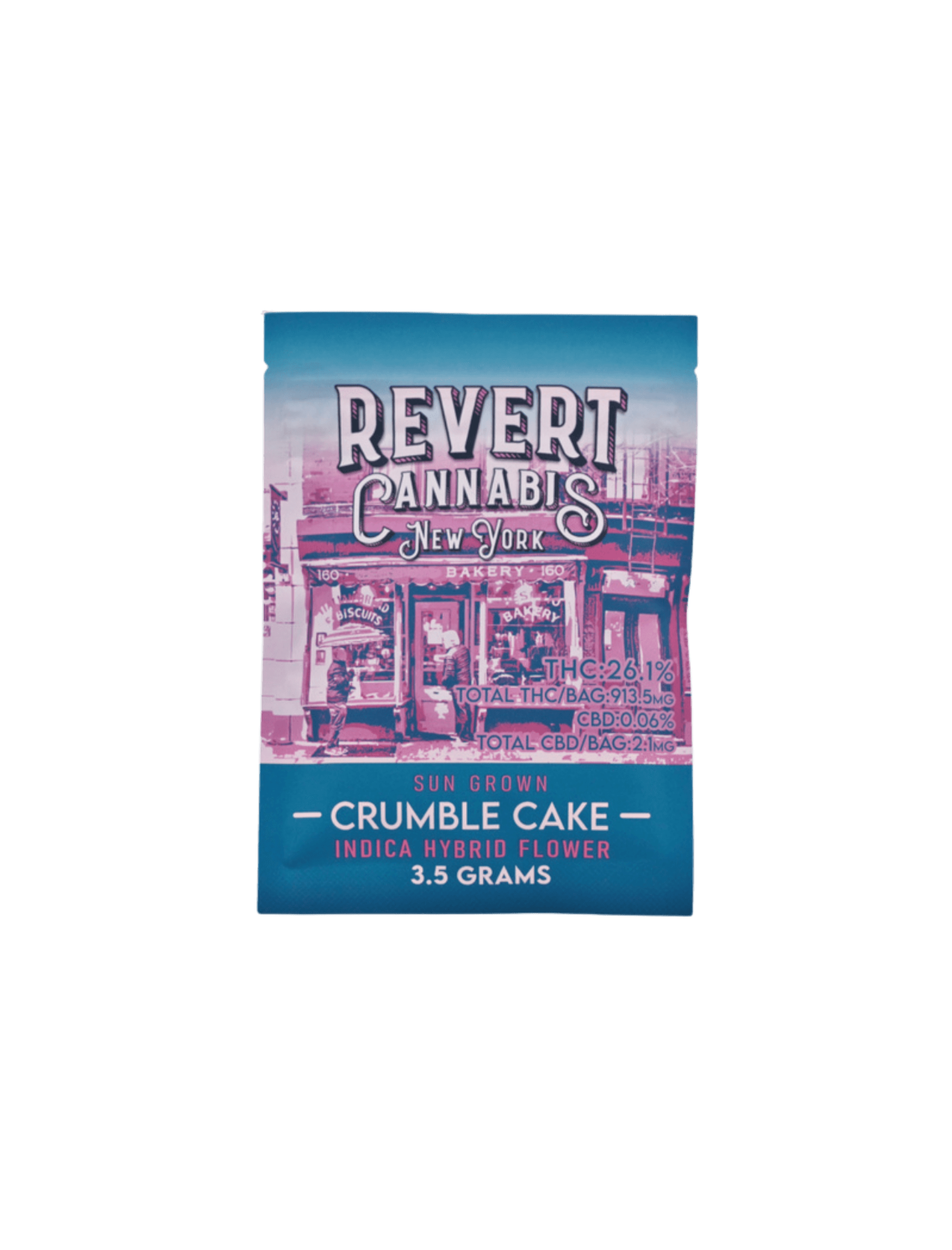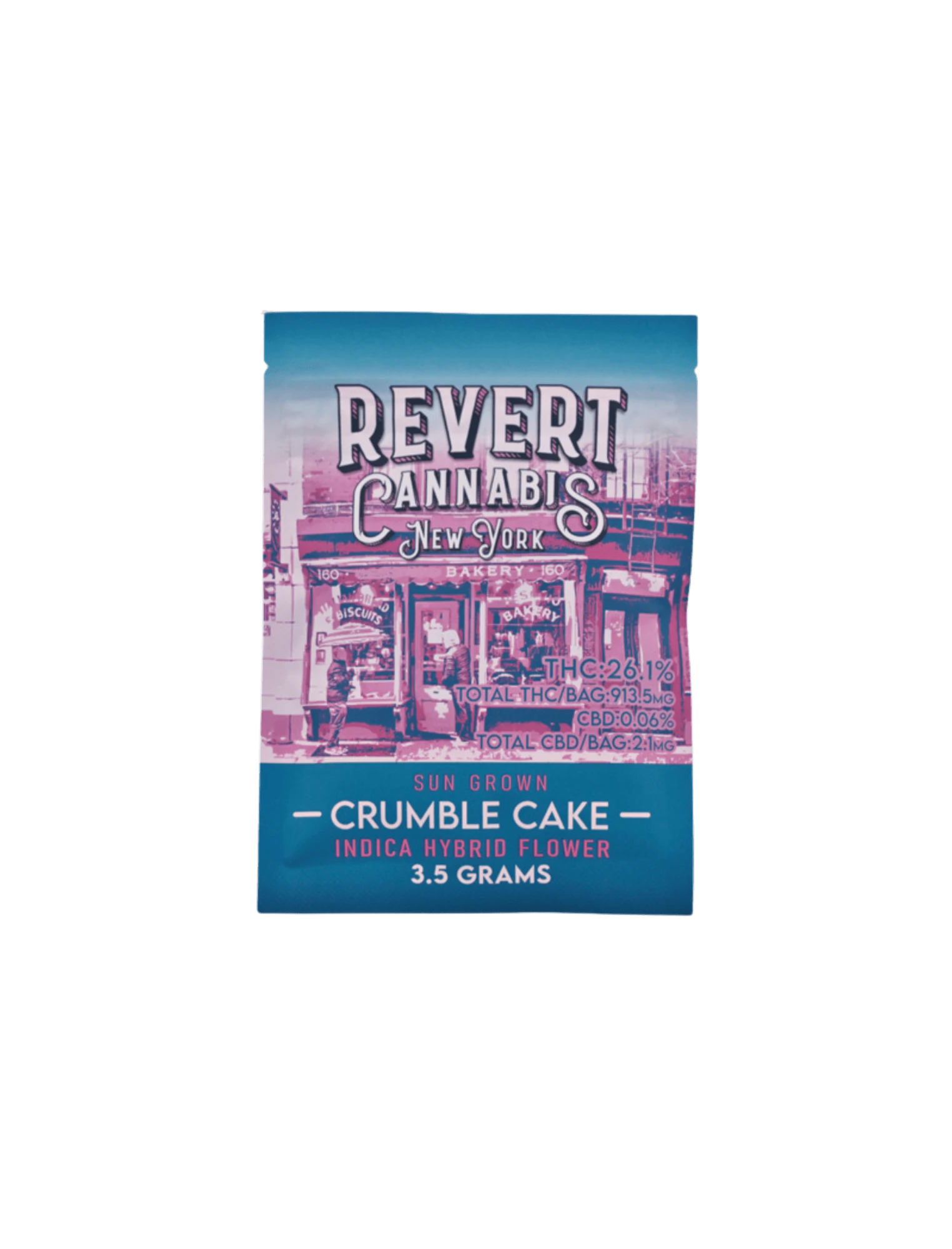 Sink into serene bliss with Crumble Cake, a luxurious sun-grown indica-hybrid crafted from the fusion of Wedding Cake and Ice Cream Cake, celebrated for its soothing effects, decadent flavors, and balanced relaxation. Grown under natural sunlight to intensify its potency and terpene complexity. Available in 3.5g pre-packaged flower that offers a slow-burning, creamy smoke ideal for unwinding, easing tension, and enjoying a tranquil yet uplifting evening.