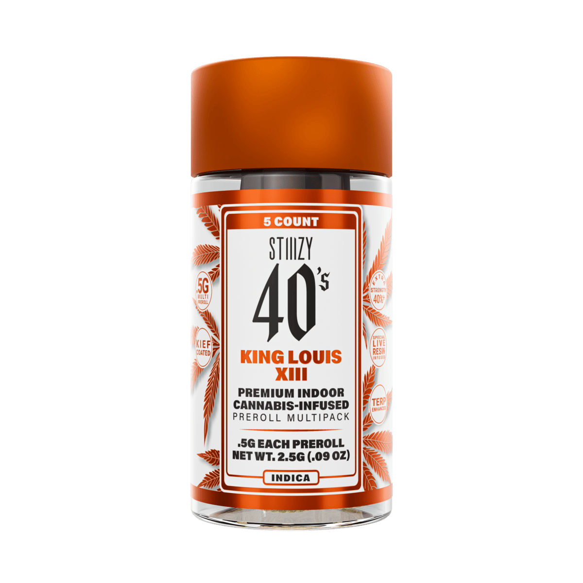 Elevate your pre-roll game. Stiiizy 40s pre-rolls are setting the standard with high potency, cannabis infused joints coated evenly with kief. Using our proprietary live resin infusion methods, we’ve designed every pre-roll to offer 40%+ THC potency with a unique flavor profile. With a smooth inhale and tasteful exhale, each and every Stiiizy 40 is packed with indoor grown flower, specifically made to ensure a potent and long-lasting high. Spark up the 40s.