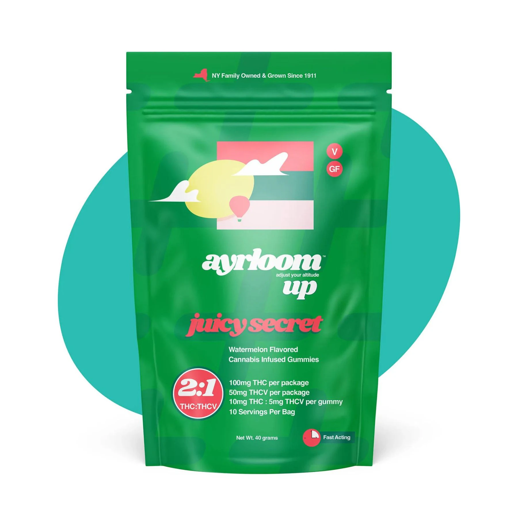 INGREDIENTS: TAPIOCA SYRUP, CANE SUGAR, PECTIN, NATURAL FLAVORS, CITRIC ACID, SODIUM CITRATE, CANNABIS EXTRACT, NATURAL COLORS (FROM FRUIT AND VEGETABLE EXTRACTS). 2/1 10mg THC, 5mg THCV per gummy