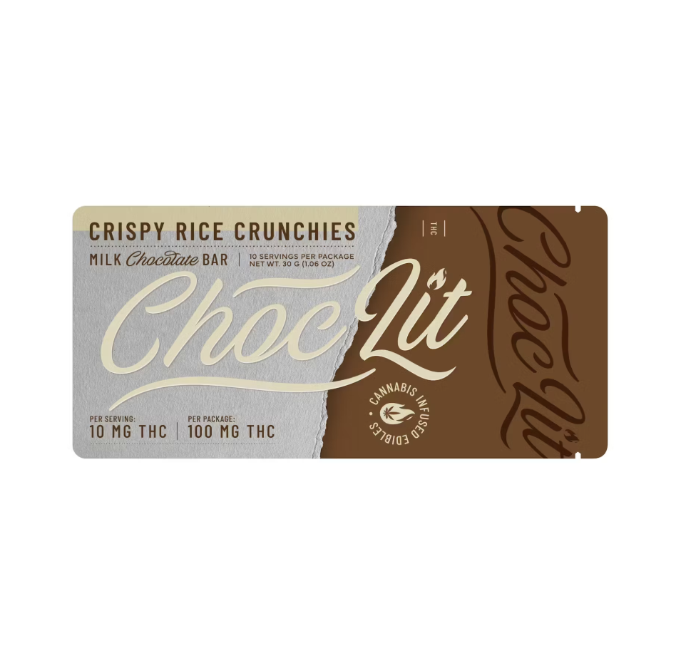 Indulge in a sweet and satisfying edible with the ChocoLit Crispy Rice Crunchies Chocolate Bar. Infused with 100mg THC, this bar combines smooth milk chocolate with light, crunchy rice crisps for a delightful texture and balanced effects. The hybrid formulation delivers both calming relaxation and a gentle mood lift—ideal for evenings, chill sessions, or creative downtime.
