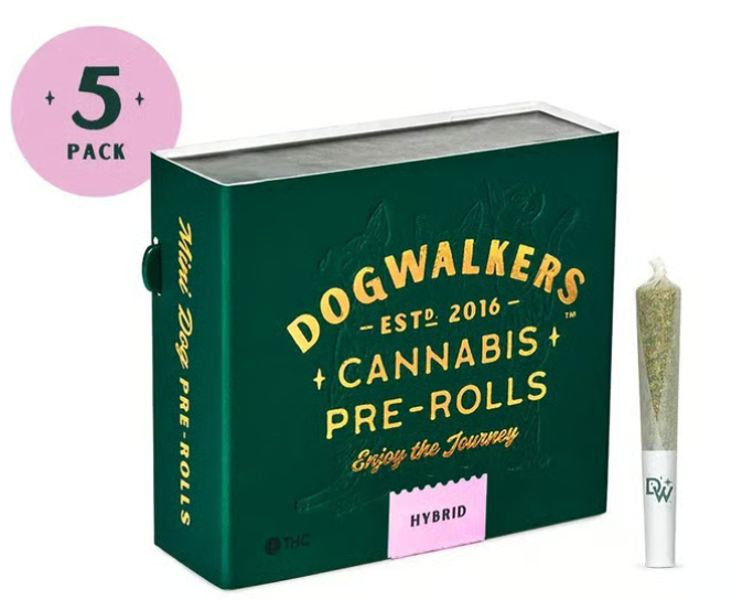 Dogwalkers “STAY” Mini Dog pre-rolls offer a total of 1.75g hybrid flower. Conveniently packaged in an on-the-go tin, each .35g miniature pre-roll (five total) is always crafted with strain-specific premium flower; never shake, stems or seeds. Dogwalkers donates a portion of proceeds from every product sold to deserving animal shelters across the country.
