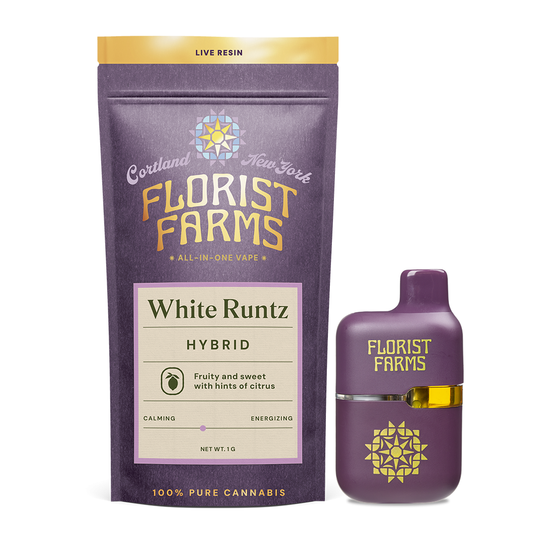 Located in Cortland, NY, Florist Farms is committed to sustainability. They practice regenerative farming by growing in living soil, using organic compost, and never using pesticides. For over a decade, they have been organic vegetable farmers and donate produce weekly to help support their community. Our friends at Florist Farms are deeply committed to quality and to delivering the cleanest cannabis products in New York State.