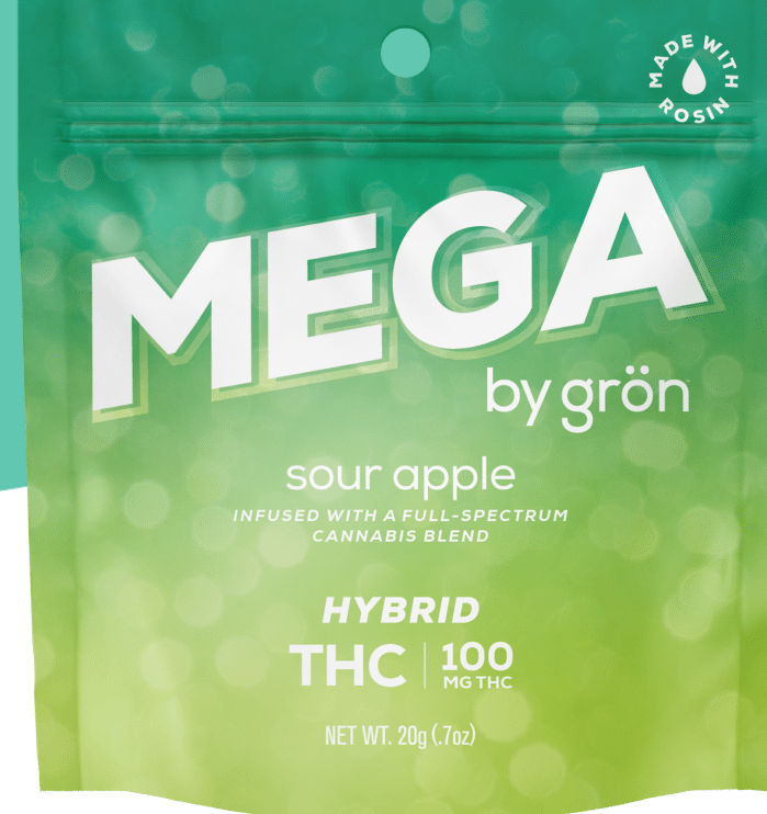 “Big Apple” a whole new meaning with Mega effects and the mouth-watering flavor of sour apple. Pucker up. Made with Real Fruit, Full-Spectrum Extract, Gluten-Free, Soy-Free