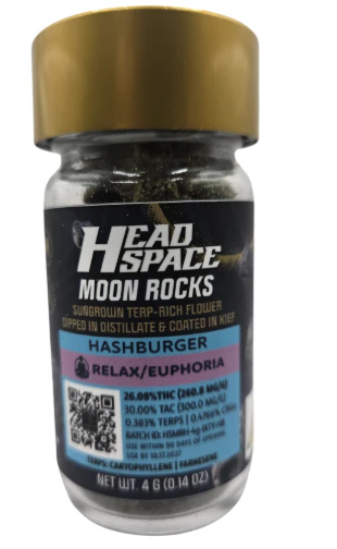 Get lost in the funk. Hashburger Whole Infused Flower combines sungrown flower, rich distillate, and a thick kief coat for a slow burn that hits deep. Expect earthy, umami notes with hints of gas, delivering calm, full-body relaxation that eases stress and tension without overwhelming power.