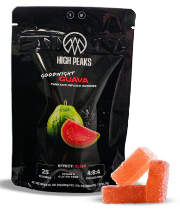 Goodnight Guava Gummies are your ticket to a restorative night’s rest. Infused with a cannabinoid blend that offers a gentle yet effective solution for bedtime bliss. Let the exotic flavor of guava soothe your senses as you drift into a peaceful slumber, knowing that every chew brings you one step closer to a rejuvenated morning. 4mg THC, 2mg CBD, and 8mg CBN per serving ensures a tranquil night's rest. Crafted for a serene experience, these gummies offer the perfect balance of relaxation with a touch of calming CBD and CBN, promising a peaceful night's sleep.