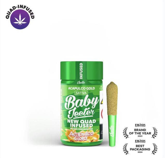 Acapulco Gold Baby Jeeter Infused | 5 0.5G Joints 2.5G Total | Indica | THC | Premium Flower Infused with Liquid Diamonds & Kief