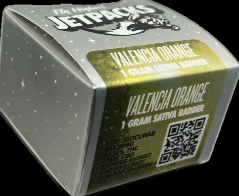 Valencia Orange by Jetpacks is a sativa-dominant cannabis badder concentrate known for its citrus-forward aroma similar to the fruit it’s named after. Containing terpenes like Beta-Caryophyllene, Humulene, and Linalool, this badder product is often characterized by a smooth, pliable consistency. As a sativa strain, it is typically associated with energetic or uplifting effects.