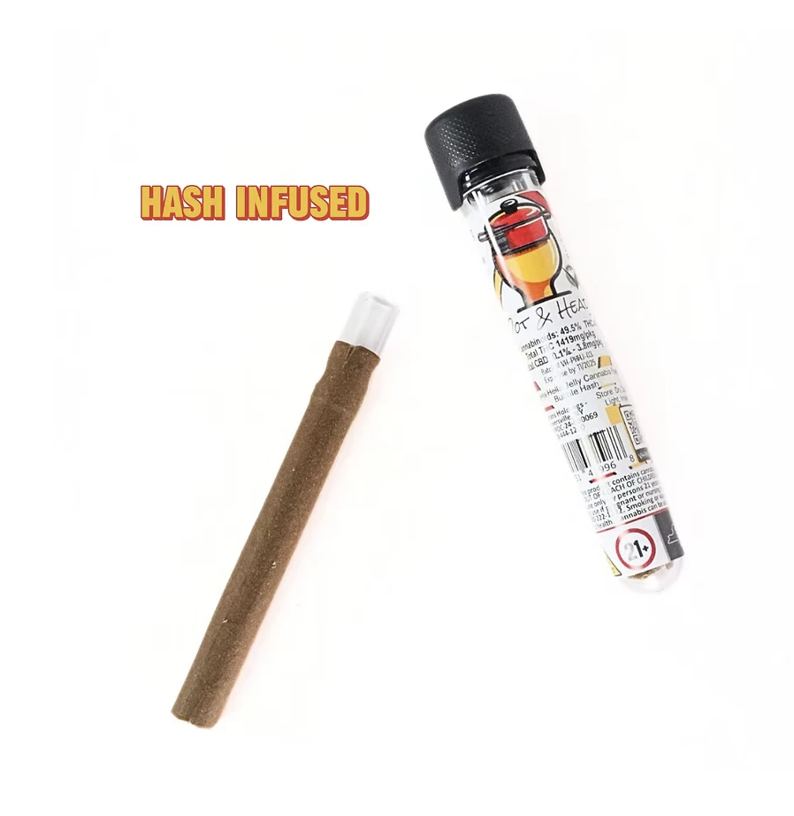 Clear your schedule, because this one’s about to sit you all the way down. Pot & Head’s 3.5g Hash Hole Blunt featuring Ice Cream Cake is a slow-burning beast packed with 3 grams of top-tier Ice Cream Cake flower and 0.5 grams of bubble hash. Wrapped in Terp Infused Juicy™ Hemp Wraps, this blunt is smooth, flavorful, and guaranteed to hit like a couch-lock freight train. The glass tip keeps every pull cool and clean, so you can take your time and enjoy the ride.