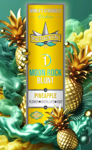 Your Presidential Blunt consists of Top-Shelf Organic Flower INFUSED with Premium THC Distillate and then Coated in the Highest Quality Kief. Our innovative proprietary infusion process enables us to permeate the flower all the way to the stem! Our Moonrocks our ground and wrapped in a 100% tobacco FREE blunt wrap!   Presidential is committed to creating the most innovative, highest quality cannabis products guaranteed to deliver a reliable and consistent dose with each use.