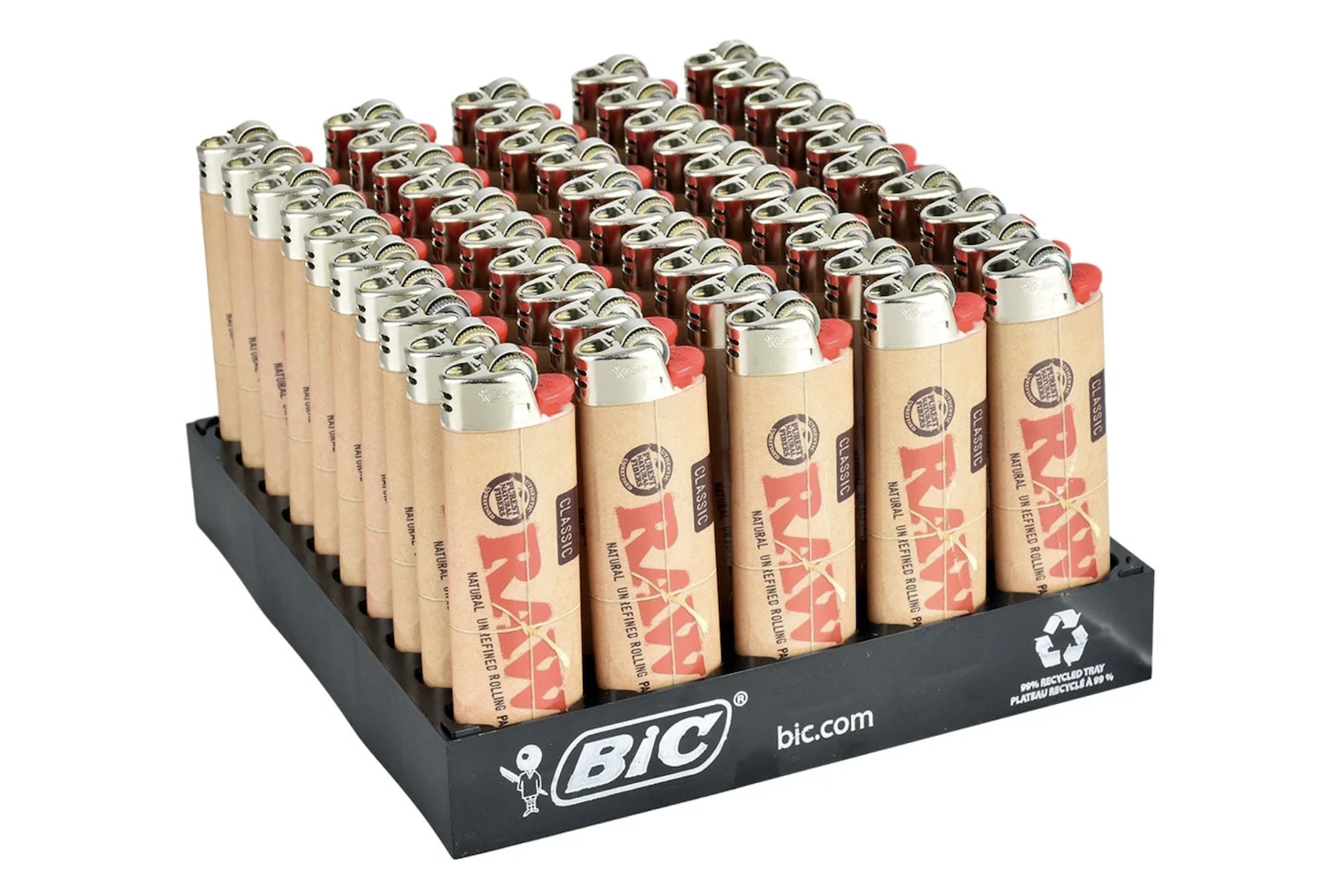 These Bic Lighters feature various RAW Rolling Papers designs, including Black, Classic, and Organic. Match your lighter with your rolling papers!