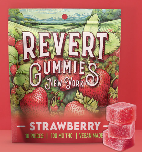 Revert Strawberry 100mg Gummy Pack Revert THC Gummies are crafted for consistency, convenience, and a clean edible experience. Each package contains 10 easily separable 10mg portions (100mg total) for simple, precise dosing. Made with cannabis distillate and a pectin-based (gelatin-free) formula, these gummies offer a smooth, reliable effect and a soft, chewy texture, and are vegan-made. Strawberry features a sweet, fruit-forward flavor with a smooth, candy-like finish.