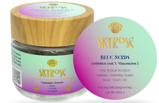 Blue Nerds (or Blue Nerdz) is a potent, Indica Leaning Hybrid, created by crossing Forbidden Fruit with Watermelon Z (or in some cases Runtz/Lemon Cherry Gelato). Known for its sweet, fruity, and gassy candy aroma, this strain delivers a euphoric, focused high that transitions into relaxing, non-sedating, and creative, making it popular for stress and pain relief.